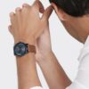 The evolution of modern design with a sharp look and elevated feel. Crafted from navy ion-plated stainless steel, this sleek timepiece features a statement-making 40mm case that houses a captivating micro-textured tonal dial with a glossy lacquer overlay, slim hands, and our iconic dot motif at 12 o’clock. A luxurious cognac leather strap with a buckle closure completes the design.