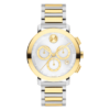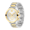 The BOLD Evolution 2.0 is defined by an elevated, bold case and a dimensional micro-textured dial. This 38mm chronograph watch features a silvertone lacquer dial with yellow goldtone subdials, slim hands, and our signature dot at 12 o’clock.