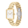 The BOLD Evolution 2.0 is defined by an elevated, bold case and a dimensional micro-textured dial. This 28mm x 26mm square watch features a white lacquer dial, slim light yellow gold tone hands, and our signature dot at 12 o’clock.