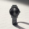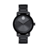 The BOLD Evolution 2.0 is defined by an elevated, bold case and a dimensional micro-textured dial. This 34mm two-hand watch features a black lacquer dial, a ceramic bracelet, and our signature dot at 12 o’clock in crystal pavé.