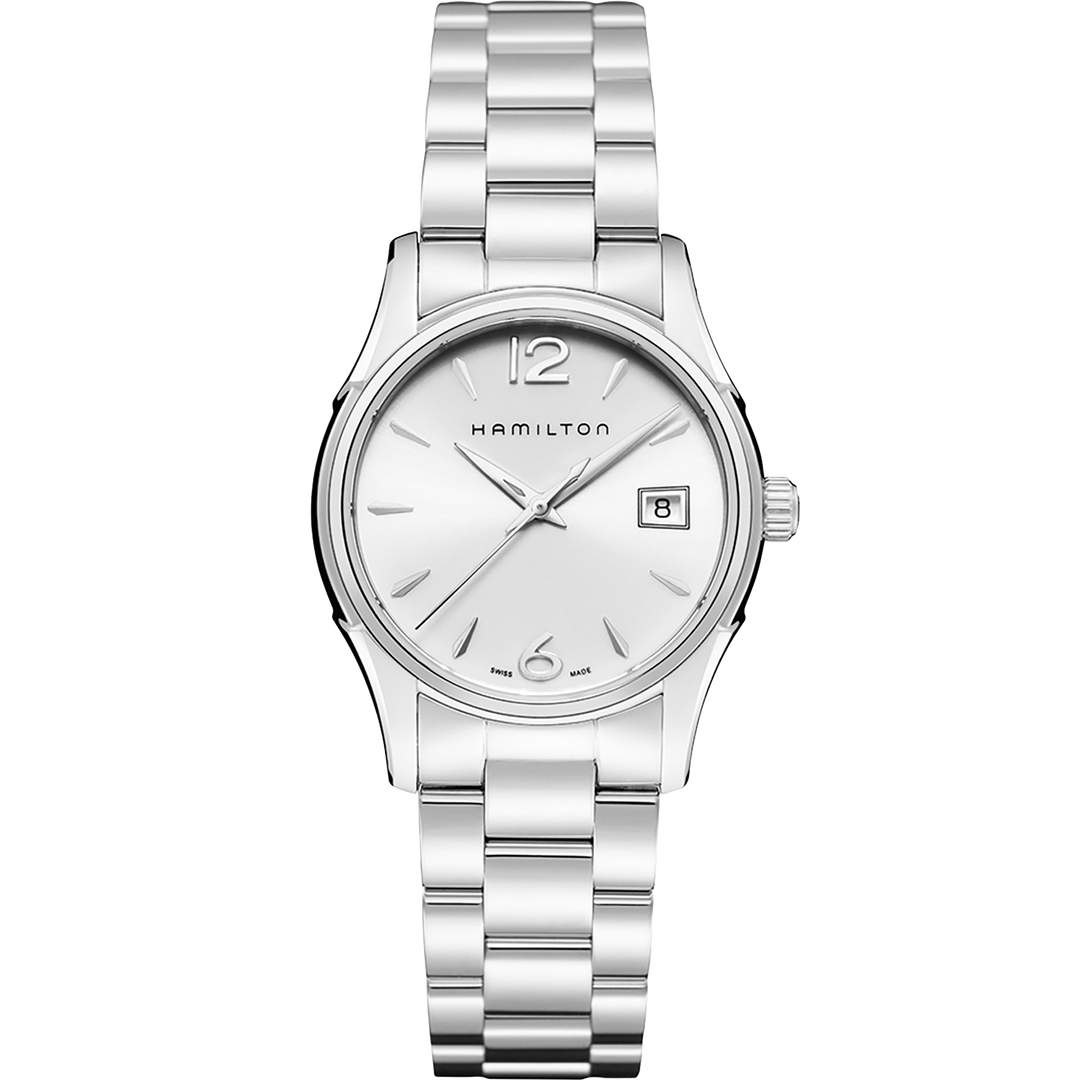 The Jazzmaster H32351115 is a refined stainless steel timepiece featuring a 34mm case with an elegant silver dial. Powered by a precise quartz movement, this watch combines classic design with modern functionality. The sapphire crystal ensures durability and clarity, while the Super Luminova hands provide visibility in low-light conditions. With an 18mm lug width and 8.1mm thickness, it offers a comfortable fit on the wrist. The folding clasp stainless steel strap ensures secure wear throughout the day. Water-resistant to 5 bar (50m), it's suitable for everyday use and light water exposure. A timeless addition to any collection.