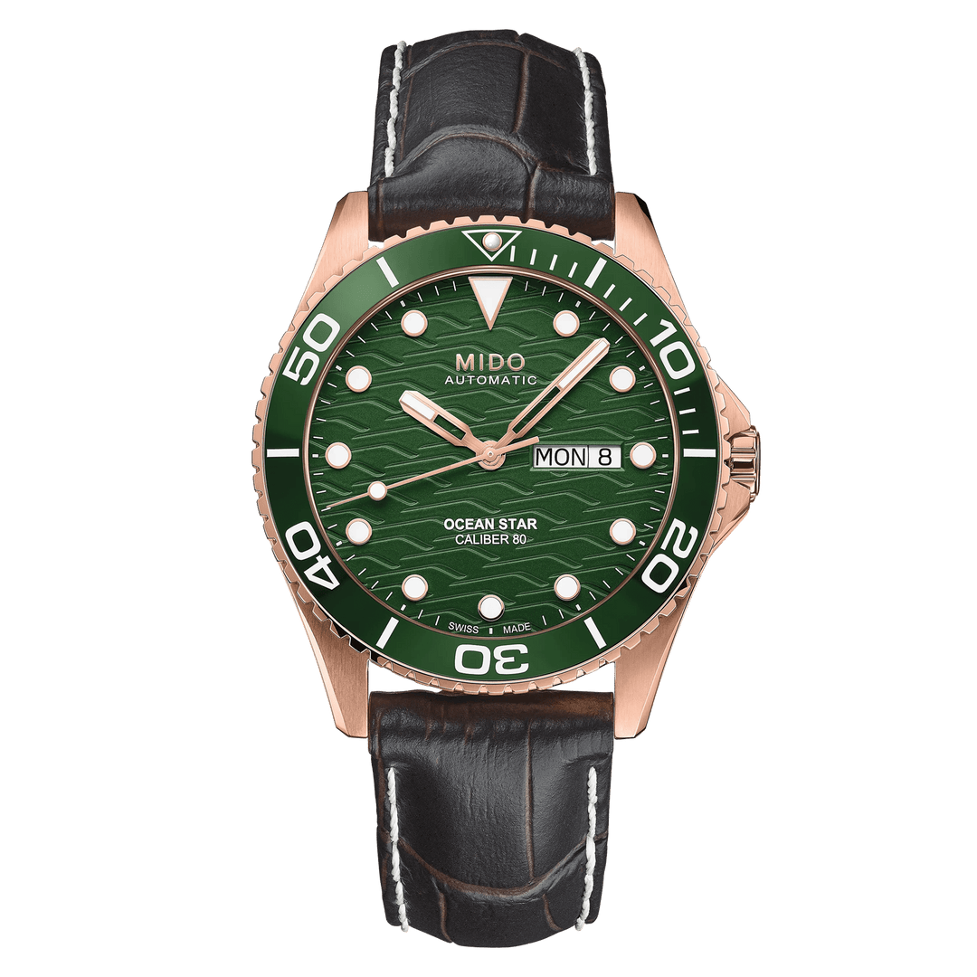 MIDO is bringing ceramic - one of the most outstanding materials in watchmaking - to the unidirectional rotating bezel of its sporty Ocean Star 200C Swiss watch. The dial is decorated offers individually applied indexes coated with white Super-Luminova®. This diving watch is water resistant up to 20 bar, with the case shape providing extra protection for the screw down crown. The screwed-on case back is engraved with the Ocean Star logo. The automatic movement, with a power reserve of up to 80 hours, ensures outstanding reliability.